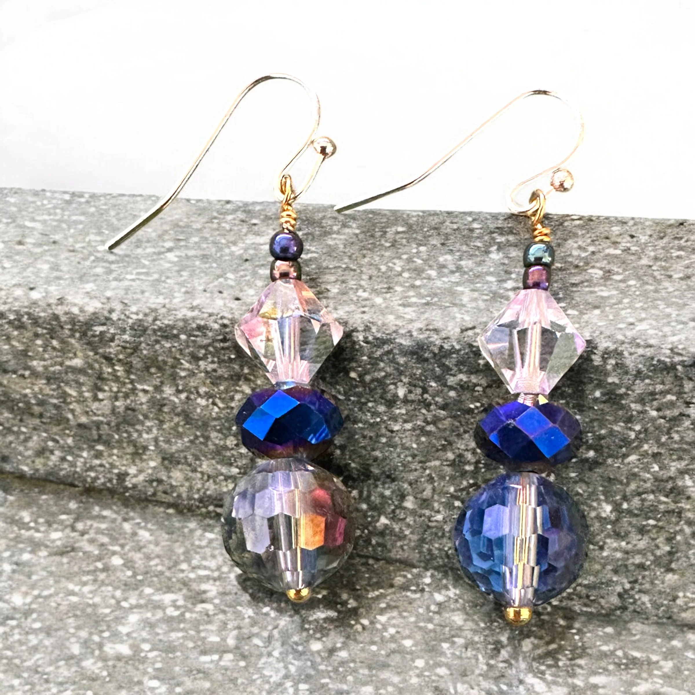PURPLE & CLEAR DROP EARRINGS